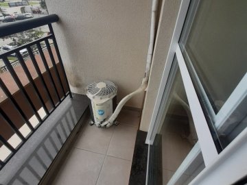 O imóvel possui uma planta bem distribuída, composta por dois dormitórios, sendo uma suíte, e dois banheiros no total. A área social conta com uma sala arejada integrada à sacada, proporcionando boa ventilação e iluminação natural. Para maior conforto térmico, a unidade já é equipada com ar-condicionado. O apartamento dispõe ainda de uma vaga de garagem coberta.